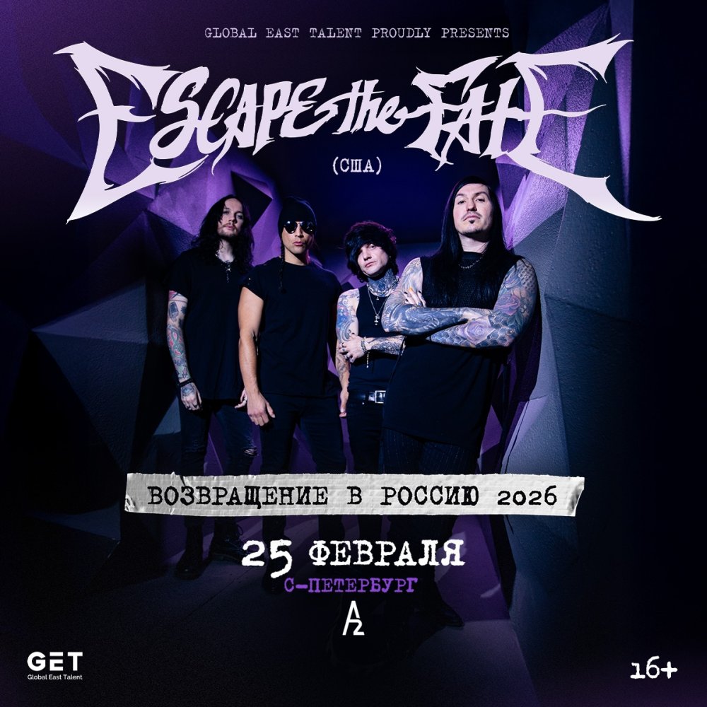 Американцы Escape the Fate спустя 10 лет возвращаются в Санкт-Петербург с концертом в клубе А2 25 февраля 2026 года.