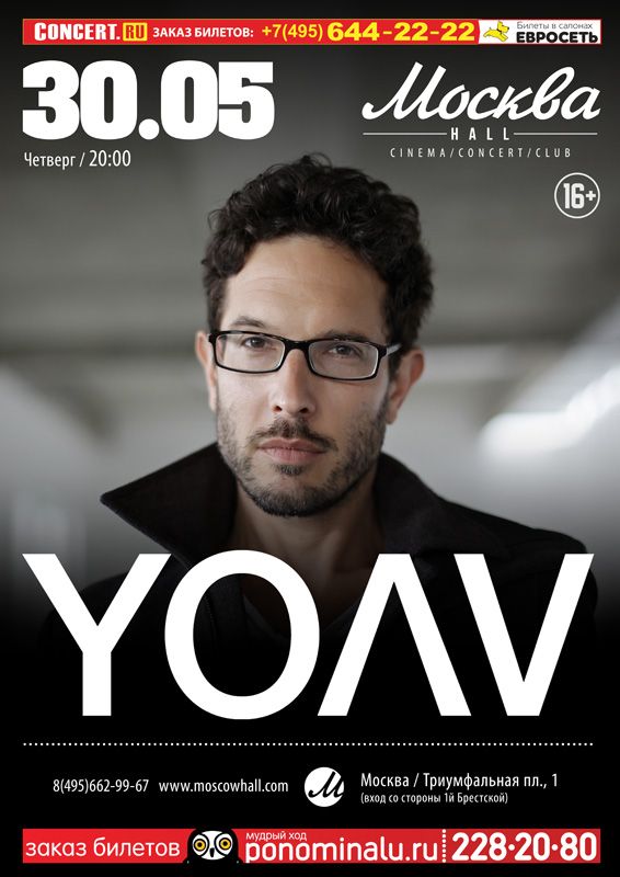 Концерт Yoav состоится 30 Мая 2013 на сцене Москва. На MusicAfisha.ru вы можете узнать подробности события, посмотреть вероятный треклист и купить билеты на концерт Yoav без наценки и комиссии. Также у нас можно найти компанию для его посещения и заказать альбомы Yoav на CD. Кроме того, ниже вы можете посмотреть видео с недавних выступлений Yoav.