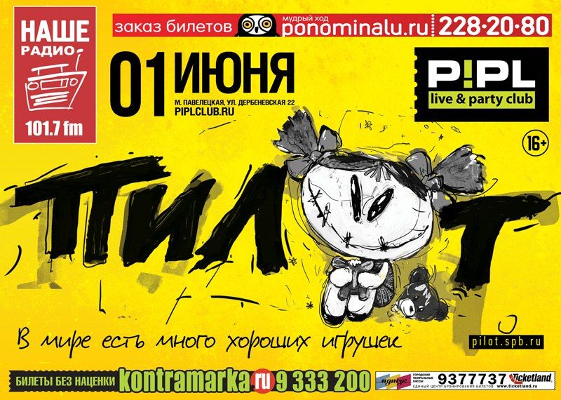 1 июня в московском клубе Pipl состоится концерт рок-группы "Пилот". Это будет первый концерт в Москве в новом составе, с обновленной ритм-секцией - басистом Сергеем Вырвичем и ударником Никитой Белозеровым. Музыканты исполнят самые разные песни: старые, давно полюбившиеся публике; свежие, с крайней пластинки "Осень"; а также представят новые композиции на суд всех поклонников.