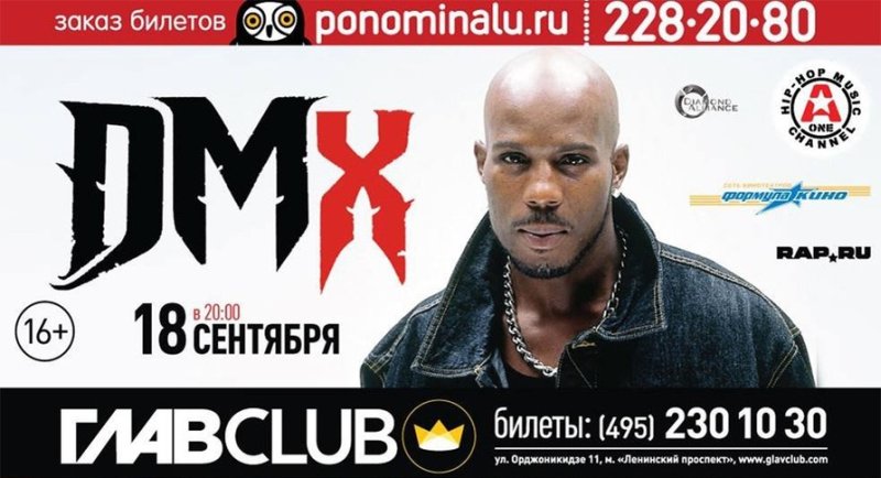 Внимание! Треклист концерта DMX составлен на основе предыдущих выступлений исполнителя - возможны изменения.