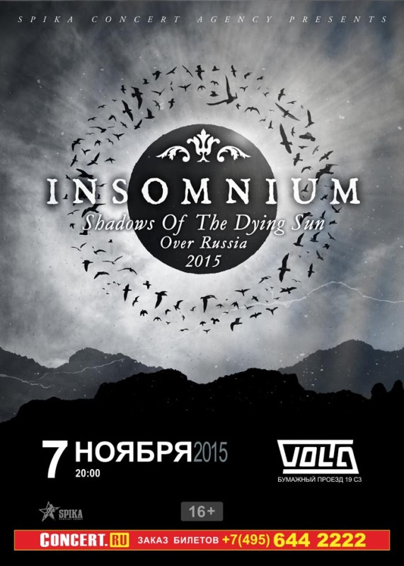 Концерт Insomnium состоится 7 Ноября 2015 на сцене Volta. На MusicAfisha.ru вы можете узнать подробности события, посмотреть вероятный треклист и купить билеты на концерт Insomnium без наценки и комиссии. Также у нас можно найти компанию для его посещения и заказать альбомы Insomnium на CD. Кроме того, ниже вы можете посмотреть видео с недавних выступлений Insomnium.