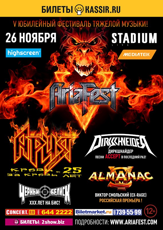 26 ноября в самом большом клубе Москвы - Stadium Live - в очередной раз пройдёт фестиваль тяжёлой музыки "Ария-Фест".