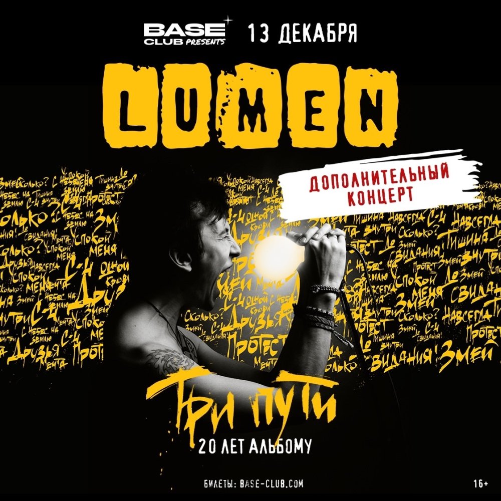 13 декабря в московском клубе Base пройдёт дополнительный концерт группы Lumen, посвящённый 20-летию альбома "Три пути".