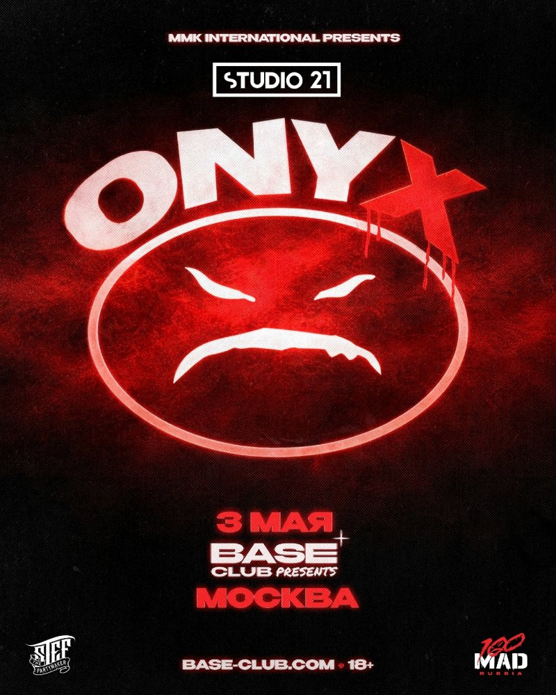 Концерт Onyx состоится 3 Мая 2026 на сцене Base. На MusicAfisha.ru вы можете узнать подробности события, посмотреть вероятный треклист и купить билеты на концерт Onyx без наценки и комиссии. Также у нас можно найти компанию для его посещения и заказать альбомы Onyx на CD. Кроме того, ниже вы можете посмотреть видео с недавних выступлений Onyx.