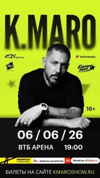 Концерт K.Maro состоится 6 Июня 2026 на сцене ВТБ Арена. На MusicAfisha.ru вы можете узнать подробности события, посмотреть вероятный треклист и купить билеты на концерт K.Maro без наценки и комиссии. Также у нас можно найти компанию для его посещения и заказать альбомы K.Maro на CD. Кроме того, ниже вы можете посмотреть видео с недавних выступлений K.Maro.