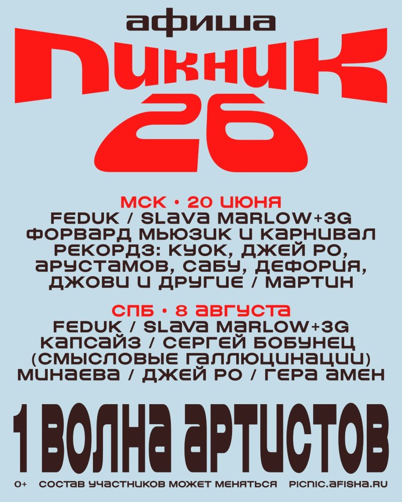 Участники фестиваля "Пикник "Афиши" 2026 в Москве: