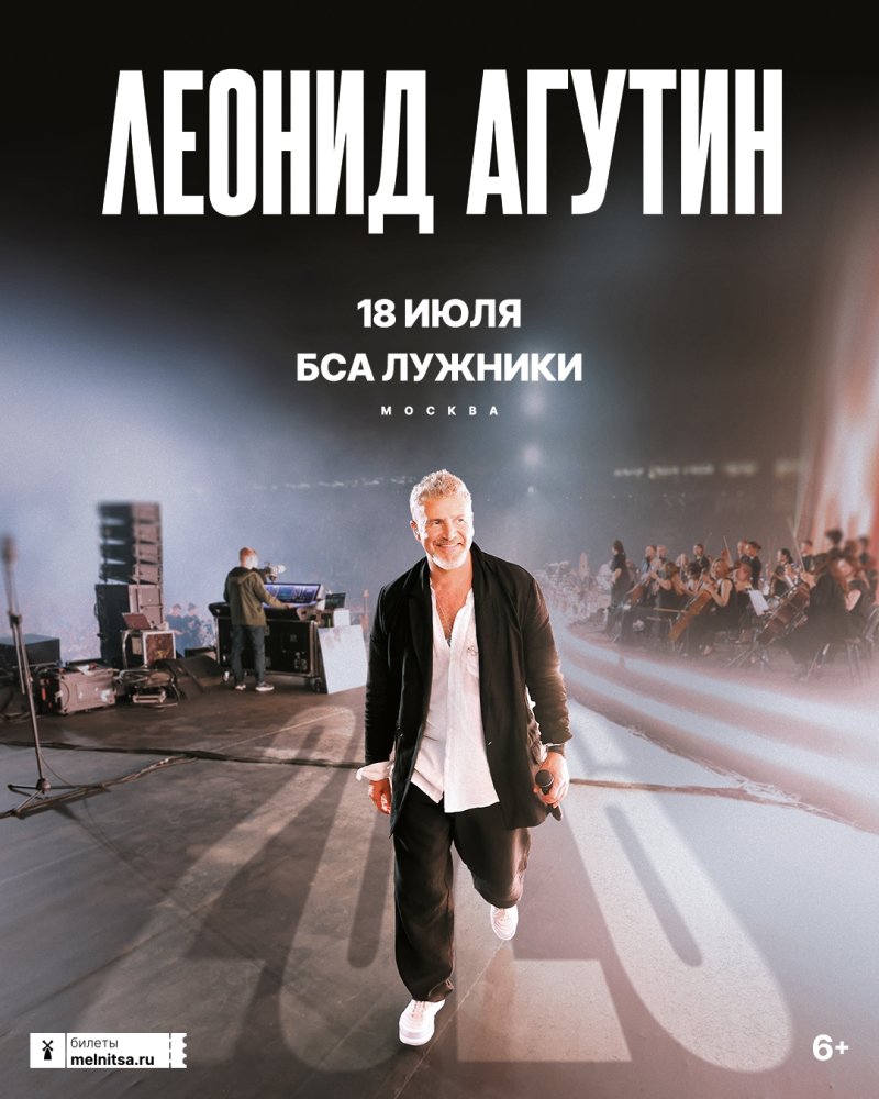 Концерт Леонид Агутин состоится 18 Июля 2026 на сцене БСА Лужники. На MusicAfisha.ru вы можете узнать подробности события, посмотреть вероятный треклист и купить билеты на концерт Леонид Агутин без наценки и комиссии. Также у нас можно найти компанию для его посещения и заказать альбомы Леонид Агутин на CD. Кроме того, ниже вы можете посмотреть видео с недавних выступлений Леонид Агутин.