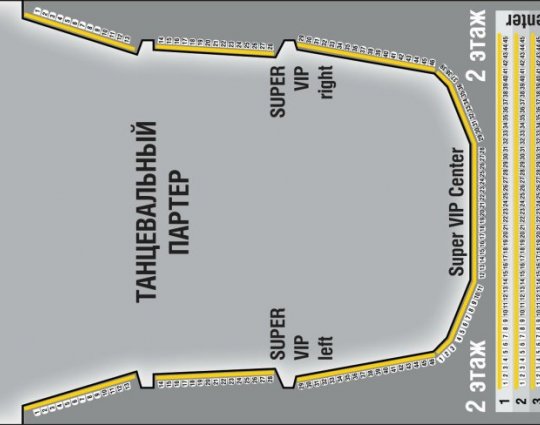 В клубе Adrenaline Stadium предусмотрена VIP-зона более чем на 600 мест. Кухня ресторана расположена рядом с VIP-зоной, гостям не придётся долго ждать заказы, а официантам - продираться сквозь толпу гостей. Здесь же - барная стойка длиной 140 метров.