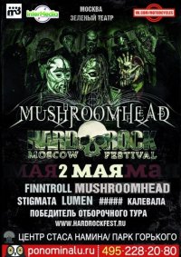 Первое заметное событие - для поклонников тяжелой музыки - 2 мая в Зеленом театре Парка Горького впервые в России выступит американская группа Mushroomhead, состоящая из 9 музыкантов в вызывающих ужас масках. "Грибы" станут хедлайнерами фестиваля Hard Rock Fest, билеты - от 1500 рублей.