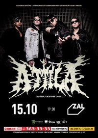 Концерт Attila состоится 15 Октября 2018 на сцене ZAL. На MusicAfisha.ru вы можете узнать подробности события, посмотреть вероятный треклист и купить билеты на концерт Attila без наценки и комиссии. Также у нас можно найти компанию для его посещения и заказать альбомы Attila на CD. Кроме того, ниже вы можете посмотреть видео с недавних выступлений Attila.