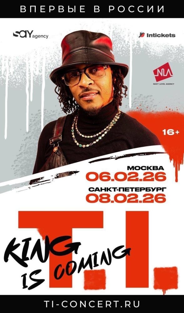 8 февраля 2026 года впервые в Санкт-Петербурге выступит трэп-новатор, обладатель трёх "Грэмми", автор бэнгеров What You Know и Whatever You Like и фитов с Тимберлейком и Рианной, легенда Атланты и рэп-икона T.I. Концерт пройдёт в спорткомплексе "Юбилейный".
